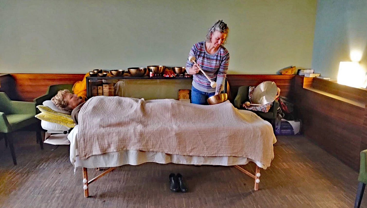 Im Gespräch mit zwei der Pflegekräfte wurde deutlich, welche wohltuende Wirkung z.B. eine Klangschalenmassage für die Gäste des Hospizes hat. Hier gehe es auch darum, Spannungen am Körper zu lösen und durch Schwingungen an unterschiedlichen Körperregionen zur Ruhe zu kommen. Auch würden die Gäste ihre Krankheit durch den positiven Einfluss der Massage eher akzeptieren. Es sei wie alles ein freiwilliges Angebot, das den Gästen gemacht wird und das von einigen gern angenommen werde.
