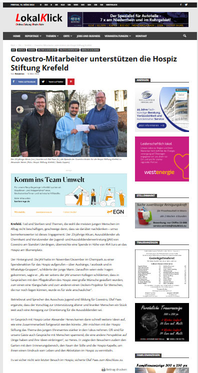 Covestro-Mitarbeiter unterstützen die Hospiz Stiftung Krefeld