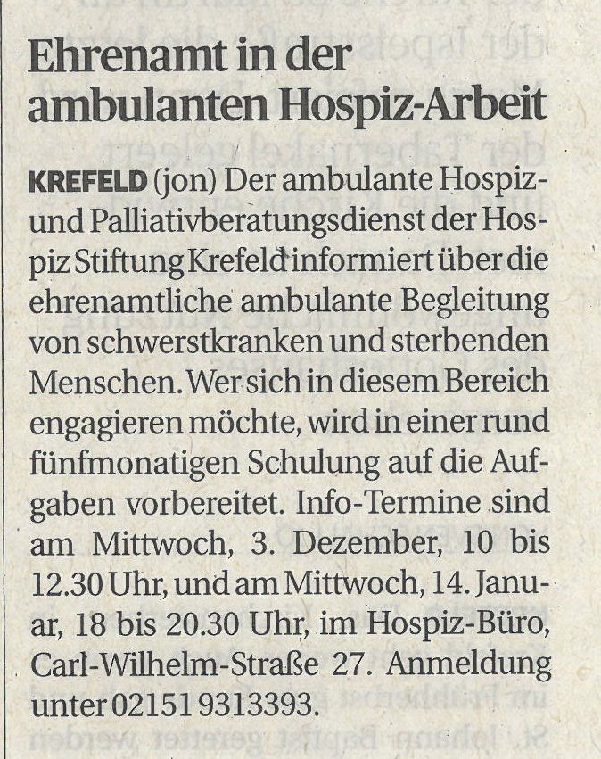 Ehrenamt in der ambulanten Hospiz-Arbeit