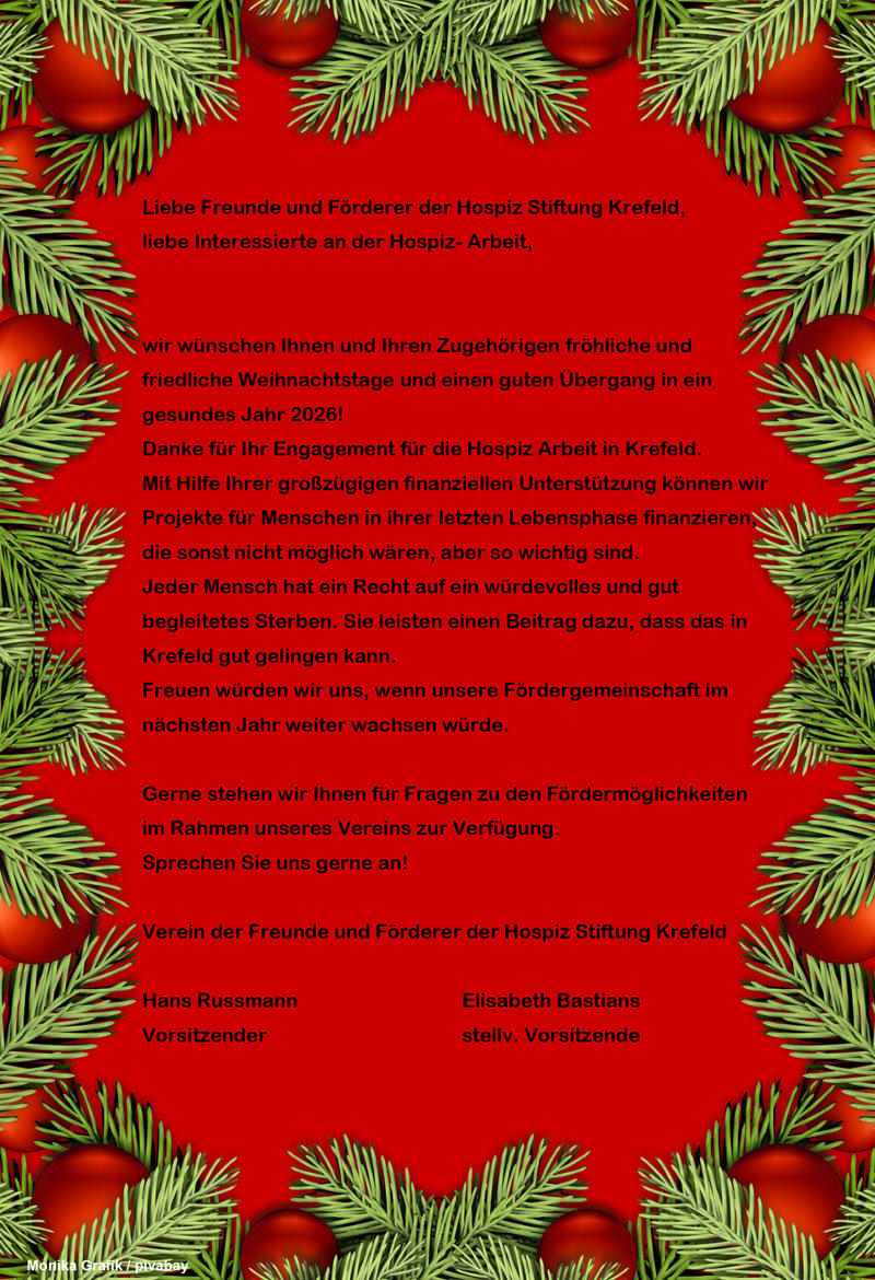 Ein Weihnachtsgruss der Freunde und Förderer der Hospiz Stiftung Krefeld