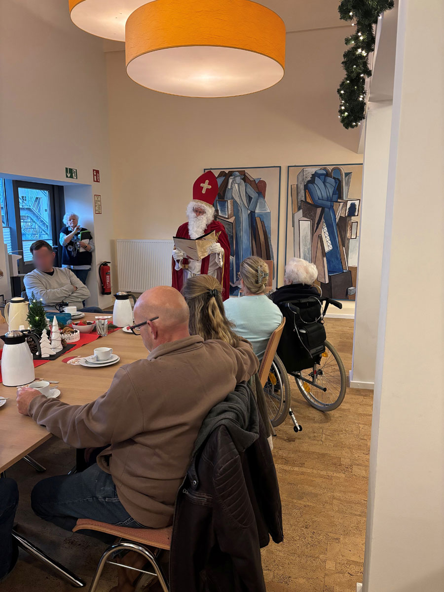 Es war ein schöner Nachmittag am Nikolaustag: Unsere Ehrenamtlerinnen hatten den Wintergarten liebevoll eingedeckt, viele unserer Gäste und ihre Angehörigen kamen zu einem gemütlichen, musikalischen Treffen hinunter und ließen sich Kuchen, Kaffee und Kinderpunsch schmecken.