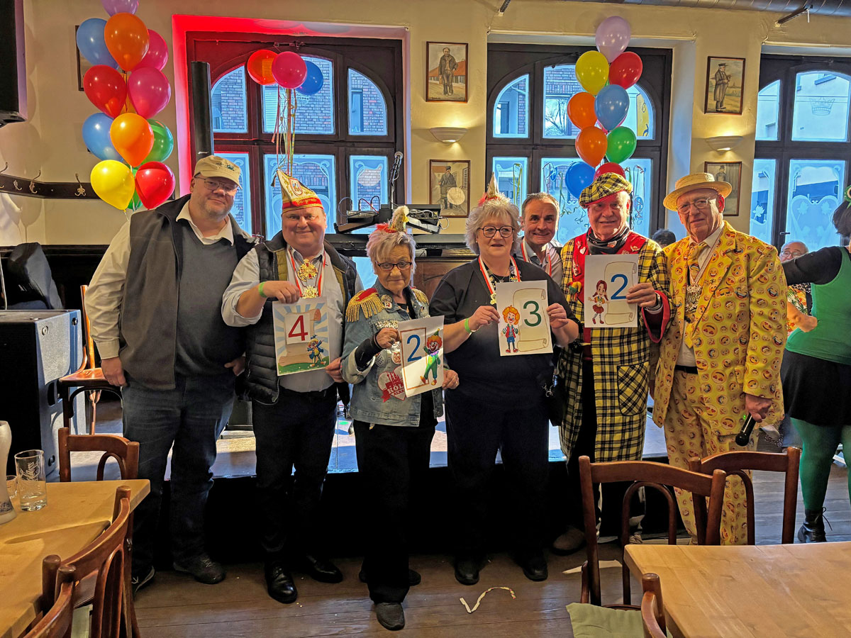 Herbert Müller hat den Frühschoppen 2017 erstmals ins Leben gerufen, „es war eine kleine, verrückte Idee“, beschreibt er. Wie in den Vorjahren war auch 2026 die Veranstaltung schnell ausverkauft. Der „musikalische Leiter“ – der Haus- und Hofmusiker des Festkomitees Kölner Karneval Andreas Jurek – begleitete die Jecken von 11 bis 16 Uhr durch ein buntes Programm. Selbstlos und unter Verzicht auf Gage stellte sich auch der Sänger und Gitarrist „Tea Jäy“ (Tobias Janssen) in den Dienst der guten Sache und brachte sich mit einem stimmungsvollen musikalischen Intermezzo ins Programm ein. Auch das amtierende Krefelder Prinzenpaar, Prinz Uli I. (Küsters) und Prinzessin Steffi III. (Ridder), besuchte mit seinem Gefolge die Feiernden und sorgte mit seinem Aufzug für beste Stimmung im Saal.