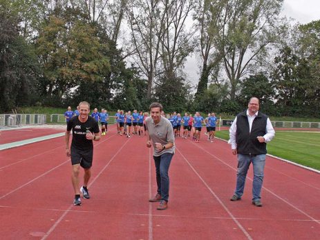 Doris Balster (v.l.; Fachberaterin Prävention AOK Rheinland/Hamburg), „Trainer“ Jan Fitschen, Jens Sattler (Geschäftsführer SSB), Hospiz-Leiter Alexander Henes und AOK-Geschäftsstellenleiter Thorsten Reski bei dem ungewöhnlichen Trainingstermin für die Triathleten des SC Bayer 05 Uerdingen. Dieser Trainingsabend (am 8. September) im Stadion Löschenhofweg war für mehr als 30 Mitglieder der Triathlon-Abteilung des SC Bayer 05 Uerdingen ein besonderes Erlebnis mit viel Spaß: Statt nach den Anweisungen der Trainer Javier Godoy und Nedim Yildiz zu trainieren, wurden sie von einem Europameister angeleitet – [...]