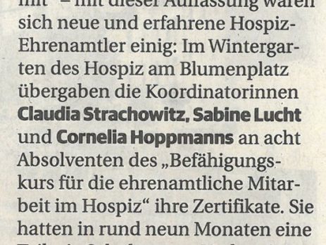 „Die Unterstützung der Menschen für uns zeigt sich auch in dieser besonderen Situation“: Hospiz-Leiter Alexander Henes ist dankbar für diese Hilfsaktionen. In den vergangenen Tagen haben sich viele Menschen gemeldet und selbst genähte Mund-Nasen-Maske gespendet. So haben Mitglieder der KG Grönland für das Hospiz genäht; auch eine engagierte Näherin aus Linn oder Menschen aus dem privaten Umfeld der Mitarbeiter des Hospizes sind aktiv. Berührt ist Henes von einer Hilfsaktion, die die Enkelin eines verstorbenen Gastes gestartet hatte: Zwölf Hobby-Näher/innen [...]