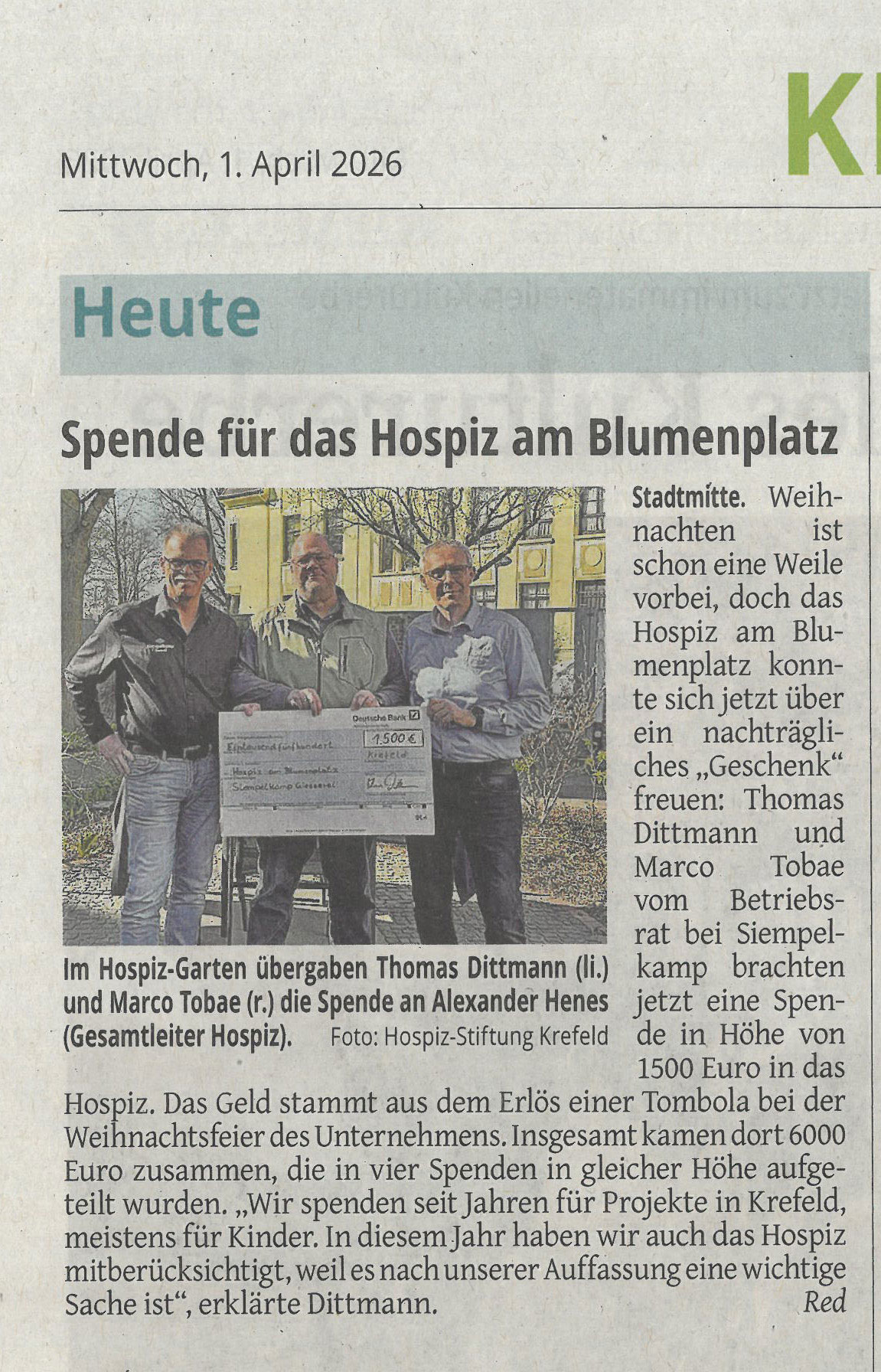 Westdeutsche Zeitung; 01. April 2026